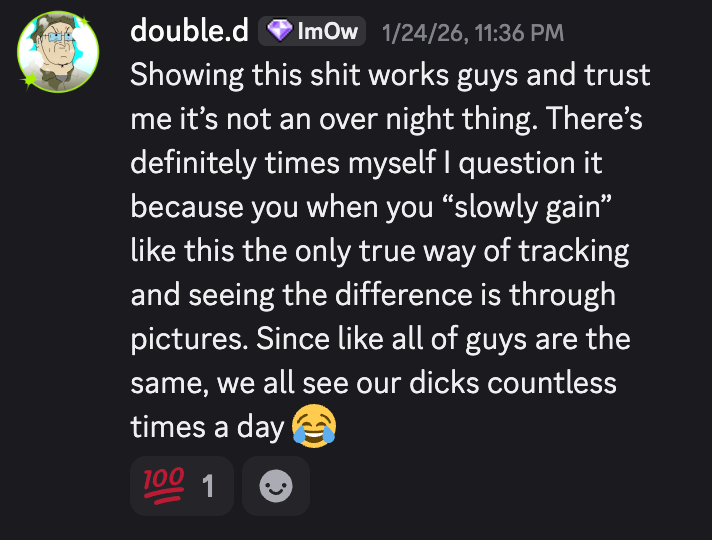 Every. Single. Post. Scrolled subreddit for over a year. Studied routines. Read the comments. Never pulled the trigger. One night I saw a guy post his 9-month results and I thought that could be me in 9 months or I could still be scrolling. Ordered the starter kit that night. Fourteen months in. +1.7 inches. Stop lurking. Start.