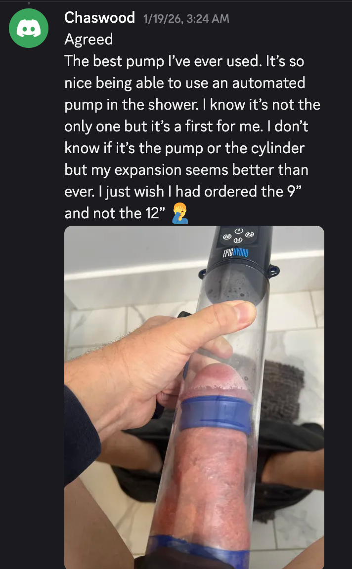 First pump session I looked down and literally said "oh we're doing this every day now." The immediate fullness is insane. Yeah the long-term gains are the real goal but that instant post-pump look gets you hooked fast. Girl came over two hours later and said I felt huge. Sold forever. Also, I've tried two other pumps, they felt like a toy compared to this.