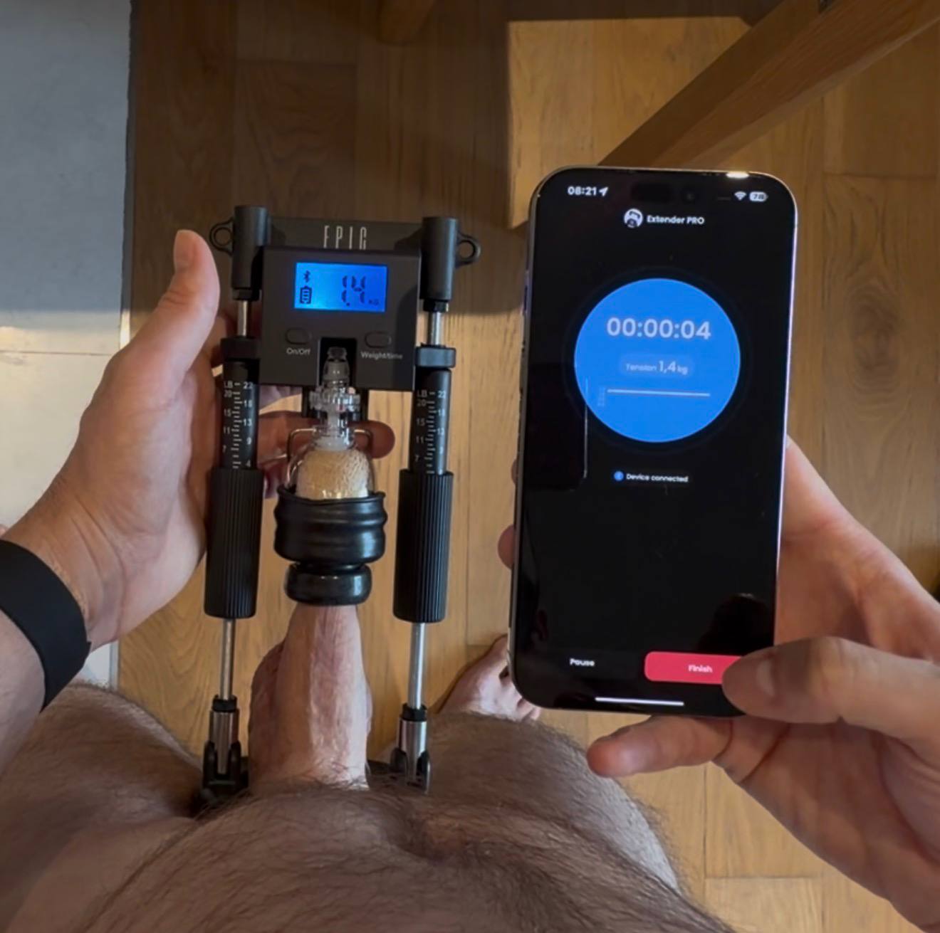 The contraption is quite large. Obviously can’t hide it under your pants, this has to be used in private. For something more discrete, they have an all-day stretcher.